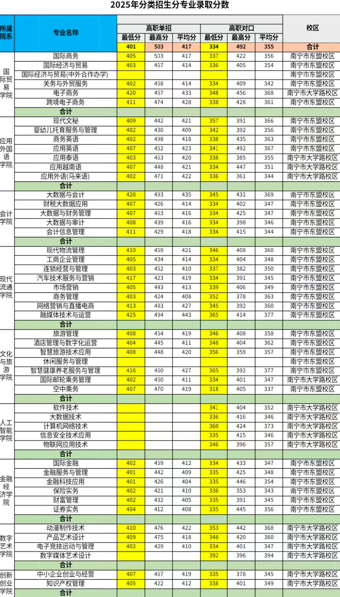 2025年分类招生分专业录取分数